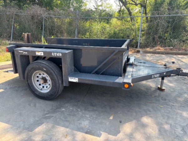 9ft Deck Trailer, Single Axle, Radial Tires, Power Deck System, Unhitched Holding, Automatic Deck Latch, Spring Suspension, 12V Self-Contained Hydraulic System, Surge Brakes, Capacity 4500lbs, Weighs 1795lbs, Fleet Maintained
