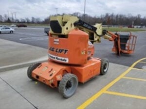 DC Electric Motor (Batteries), 2WD, Solid Non-Marking Tires, 30% Gradeability, 180 Degree JIB-PLUS, 4’ Platform, 500lbs Unrestricted Max Platform Capacity, Fleet Maintained