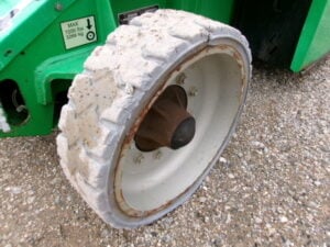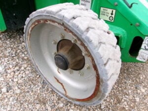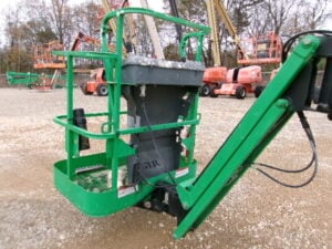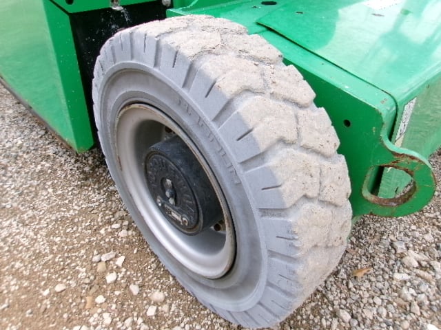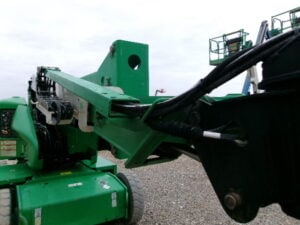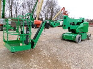 DC Electric Motor (Batteries), 2WD, Solid Non-Marking Tires, 30% Gradeability, 180 Degree JIB-PLUS, 4′ Platform, 500lbs Unrestricted Max Platform Capacity, Fleet Maintained