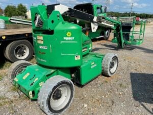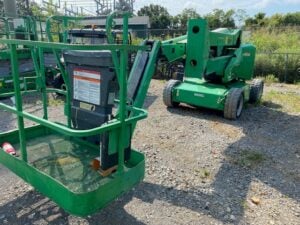 DC Electric Motor (Batteries), 2WD, Non-Marking Foam Filled Tires, JIB, 5′ Platform, 500lbs Lift Capacity, Fleet Maintained