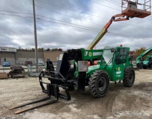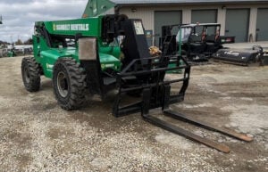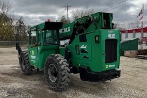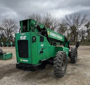 Factory Enclosed CAB w/ HEAT, Outriggers/Stabilizers, Cummins Turbo Diesel Engine – 110HP, 4WD, Solid BOSS Tires, Crab-Steering, Frame Leveling, Auxiliary Hydraulics, Quick Tach, QC Carriage w/ Forks, Weighs 31500lbs