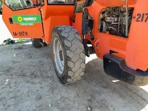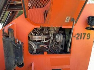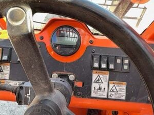 Factory Enclosed CAB w/ HEAT, Cummins Turbo Diesel Engine – 85HP, Foam Filled Tires, 4WD, Crab-Steering, Frame Leveling, Auxiliary Hydraulics, Quick Tach, QC Carriage w/ Forks, Fleet Maintained