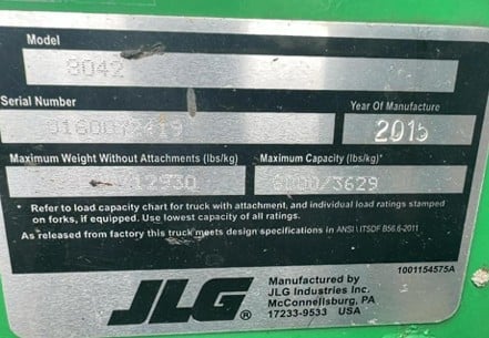 8,000lbs Lift Cap / 42′ Lift Height