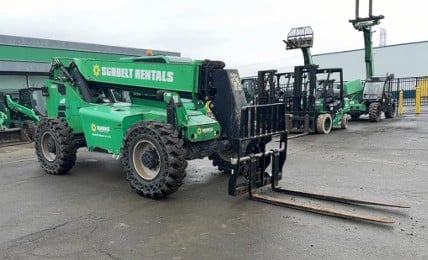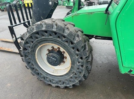 Factory Enclosed CAB w/ HEAT, Cummins Turbo Diesel Engine, Solid BOSS Tires, 4WD, Crab-Steering, Frame Leveling, Auxiliary Hydraulics, Quick Tach, QC Carriage w/ Forks, Fleet Maintained