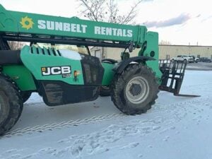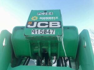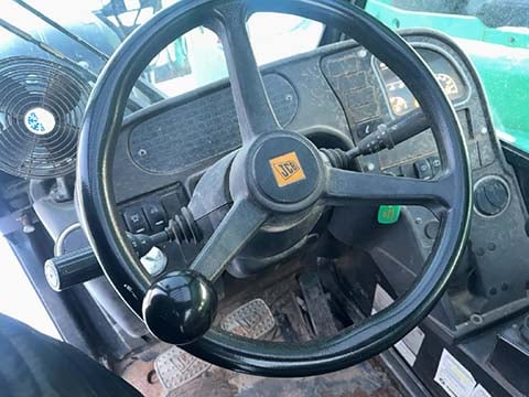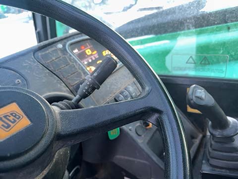 Factory Enclosed CAB w/ HEAT, JCB Turbo Diesel Engine, Foam Filled Tires, 4WD, Crab-Steering, Lift Shackle, Frame Leveling, Auxiliary Hydraulics, Quick Tach, QC Side-Tilting Carriage w/ Forks, Fleet Maintained, Weighs 23210lbs