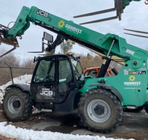 Factory Enclosed CAB w/ HEAT, JCB Turbo Diesel Engine, Foam Filled Tires, 4WD, Crab-Steering, Lift Shackle, Frame Leveling, Auxiliary Hydraulics, Quick Tach, QC Side-Tilting Carriage w/ Forks, Fleet Maintained