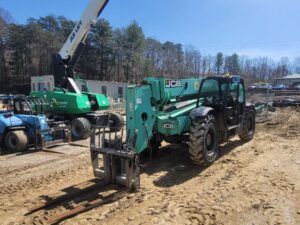JCB Turbo Diesel Engine, 4WD, Solid BOSS Tires, Crab-Steering, Fenders, Frame Leveling, Auxiliary Hydraulics, Quick Tach, QC Carriage w/ Forks, Fleet Maintained