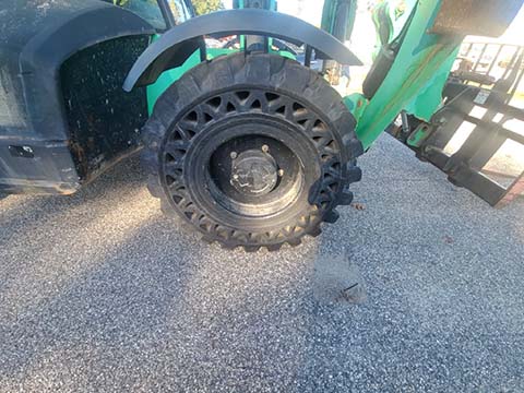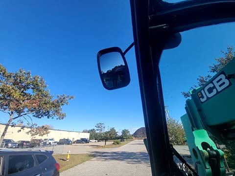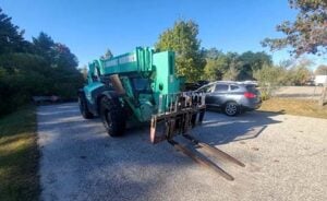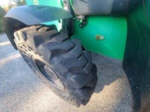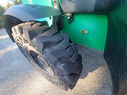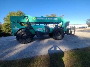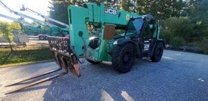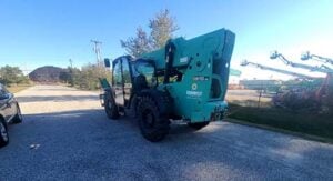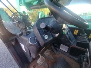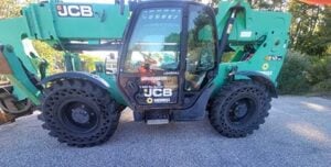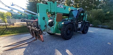 Factory Enclosed CAB w/ HEAT, Outriggers/Stabilizers, JCB Turbo Diesel Engine w/ Block Heater, Solid BOSS Tires, 4WD, Crab-Steering, Fenders, Work Lights, Frame Leveling, Auxiliary Hydraulics, Quick Tach, QC Side-Tilting Carriage w/ Forks, Fleet Maintained, Weighs 29430lbs