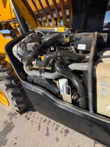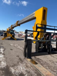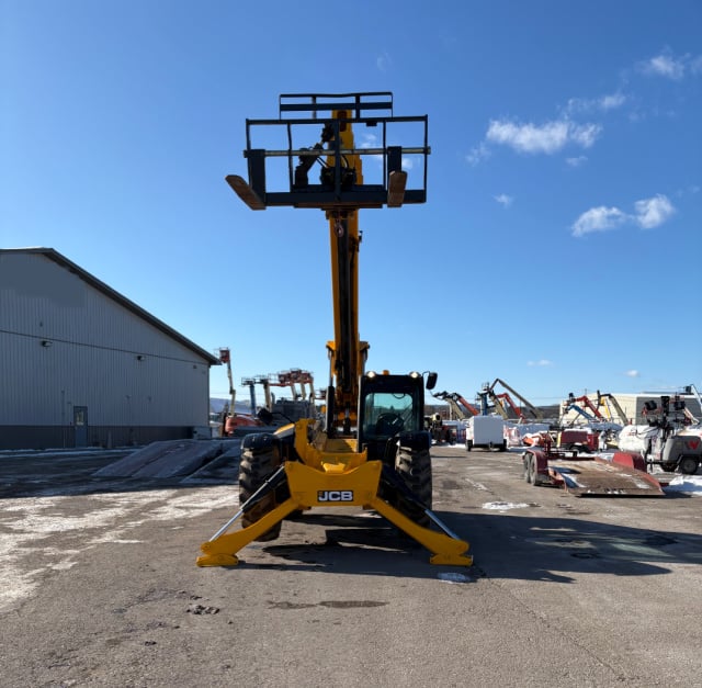 Factory Enclosed CAB w/ HEAT & AC, Outriggers/Stabilizers, JCB Turbo Diesel Engine w/ Block Heater – 109HP, Foam Filled Tires, 4WD, Crab-Steering, Fenders, Work Lights, Lift Hook, Frame Leveling, Auxiliary Hydraulics, Quick Tach, QC Side-Tilting Carriage w/ Forks, FRESH Service (Filters & Fluids), Touch-Up Paint & Some New Decals, Fleet Maintained, Weighs 29430lbs