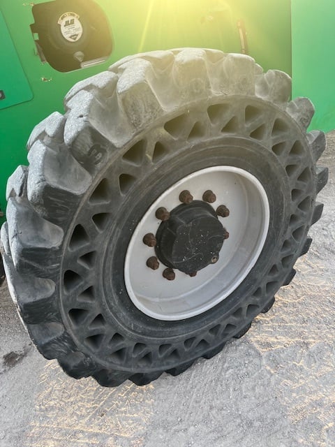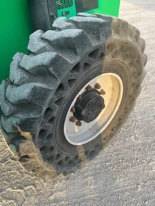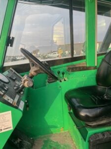 Factory Enclosed CAB w/ HEAT, Cummins Turbo Diesel Engine – “No DEF” 74HP, Solid BOSS Tires, 4WD, Crab-Steering, Frame Leveling, Auxiliary Hydraulics, Quick Tach, QC Carriage w/ Forks, Fleet Maintained