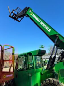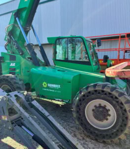 Factory Enclosed CAB w/ HEAT, Cummins Turbo Diesel Engine – “No DEF” 74HP, Solid BOSS Tires, 4WD, Crab-Steering, Frame Leveling, Auxiliary Hydraulics, Quick Tach, QC Carriage w/ Forks, Fleet Maintained