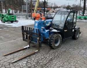 Factory Enclosed CAB w/ HEAT, Deutz Turbo Diesel Engine – “No DEF” 74HP, Foam Filled Tires, 4WD, Crab-Steering, Auxiliary Hydraulics, Quick Tach, QC Carriage w/ Forks, Fleet Maintained