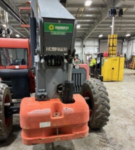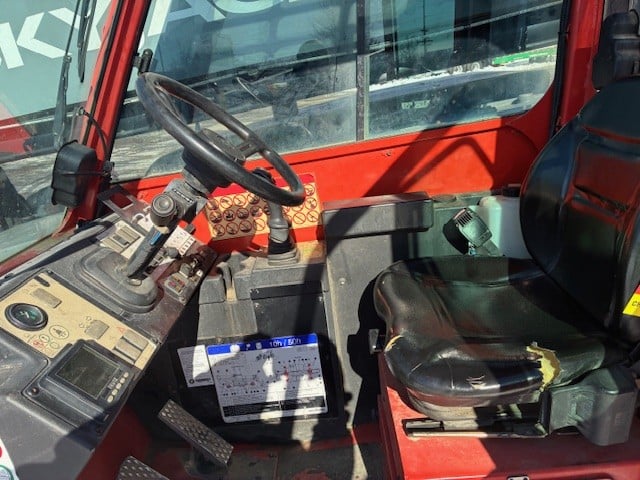 Factory Enclosed CAB w/ HEAT & AC, Deutz Turbo Diesel Engine – “NO DEF” 74HP, Non-Marking Foam Filled Tires, 4WD, Crab-Steering, Frame Leveling, Auxiliary Hydraulics, Quick Attach, QT Carriage w/ Forks, Fleet Maintained