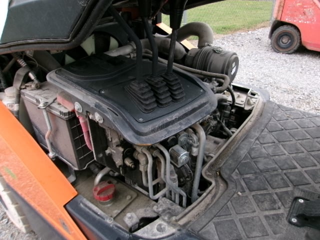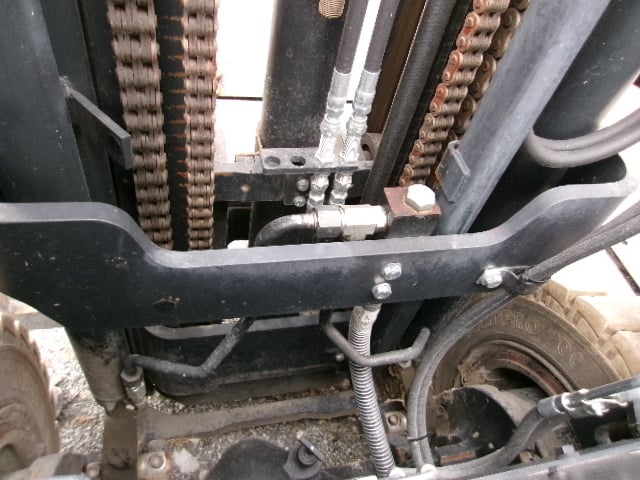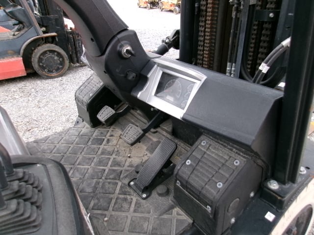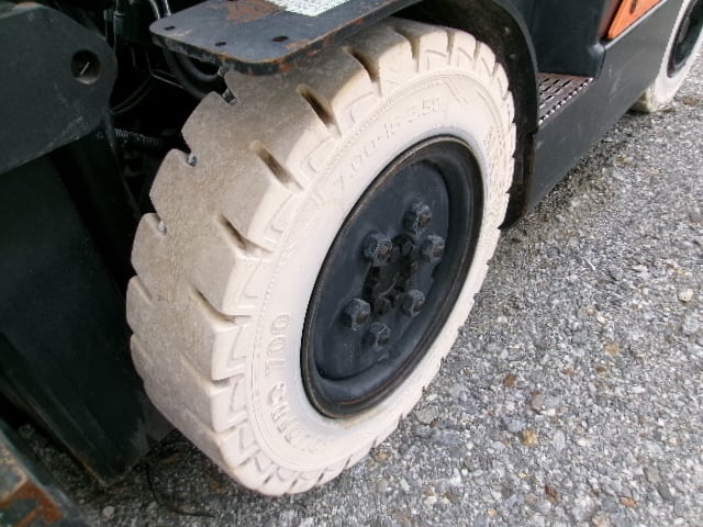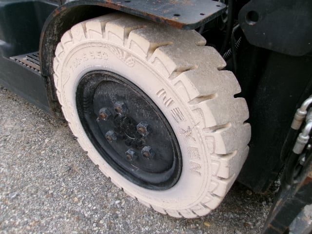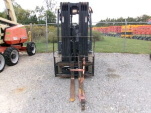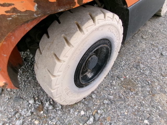 Hyundai Dual Fuel Engine (Gas or Propane), 2WD, Solid Non-Marking Pneumatic Tires, LED Lights, Strobe Lights, Side Shift, 42″ Forks, Fleet Maintained, Weighs 9821lbs
