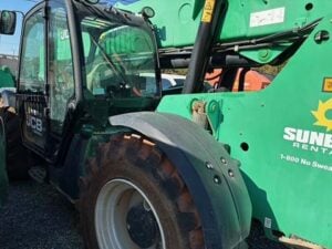 Factory Enclosed CAB w/ HEAT & AC, Outriggers/Stabilizers, JCB Turbo Diesel Engine – “No DEF” 74HP, Foam Filled Tires, 4WD, Crab-Steering, Fenders, Frame Leveling, Auxiliary Hydraulics, Quick Tach, QC Side-Tilting Carriage w/ Forks, Fleet Maintained