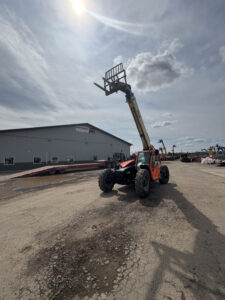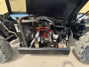 Factory Enclosed CAB w/ HEAT, Cummins Turbo DSL, Foam Filled Tires, 4WD, Crab Steering, Work Lights, Frame Leveling, Auxiliary Hydraulics, Quick Tach, QC Carriage w Forks, Paint Touch-up w/ Some New Decals, FRESH Service (Fluids & Filters), Fleet Maintained, Weighs 27619lbs