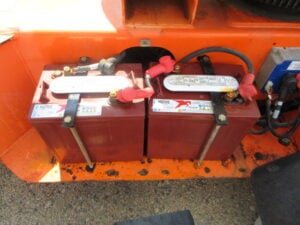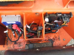 DC Electric Motor (Batteries), Auto Self-Leveling Hydraulic Outriggers/Stabilizers, Joystick Controller, Spare Tire, JIB, 4’ Rotating Platform, Fleet Maintained, Weighs 3745lbs