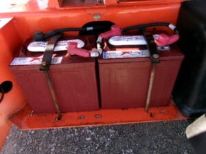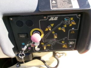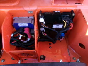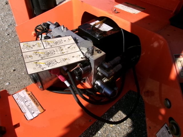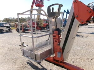 DC Electric Motor (Batteries), Auto Self Leveling Hydraulic Outriggers/Stabilizers, Joystick Controller, JIB, 4′ Platform, Fleet Maintained, Weighs 5200lbs