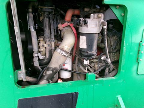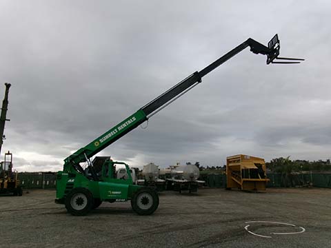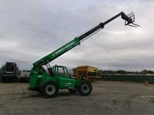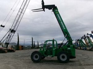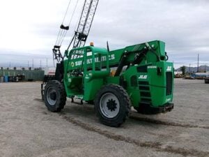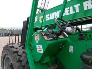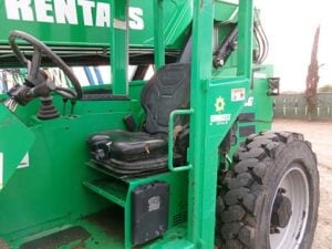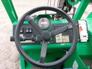 Cummins Turbo Diesel Engine – “No DEF” 74HP, Foam Filled Tires, 4WD, Crab-Steering, Frame Leveling, Auxiliary Hydraulics, Quick Tach, QC Carriage w/ Forks, Fleet Maintained, Weighs 12403lbs