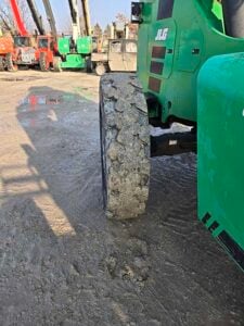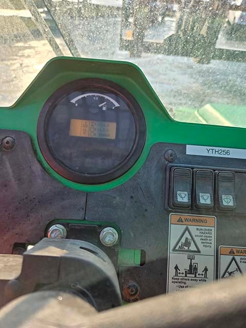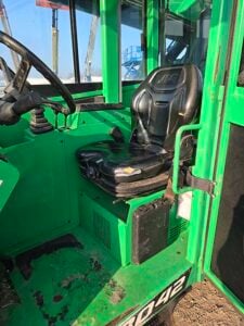 Factory Enclosed CAB w/ HEAT, Cummins Turbo Diesel Engine – “No DEF” 74HP, 4WD, Foam Filled Tires, Crab-Steering, Frame Leveling, Auxiliary Hydraulics, Quick Tach, QC Carriage w/ Forks, Fleet Maintained, Weighs 28500lbs