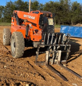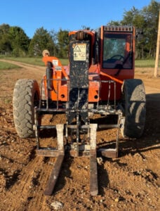 Factory Enclosed CAB w/ HEAT & AC, Cummins Turbo Diesel Engine – 110HP, 4WD, Foam Filled Tires, Crab-Steering, Frame Leveling, Auxiliary Hydraulics, Quick Tach, QC Carriage w/ Forks, Fleet Maintained