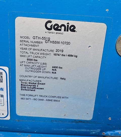 Inicio – Products – CARRETILLAS ELEVADORAS TELESCÓPICAS – 2019 GENIE GTH-5519 – Used Telehandler Forklift