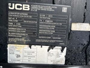 JCB Turbo Diesel Engine – “No DEF” 74HP, 4WD,  Foam Filled Tires, Crab-Steering, Fenders, Lift Hook, Work Lights, Frame Leveling, Auxiliary Hydraulics, Quick Tach, QC 72″ Carriage w/ Forks, Fleet Maintained, Weighs 21100lbs