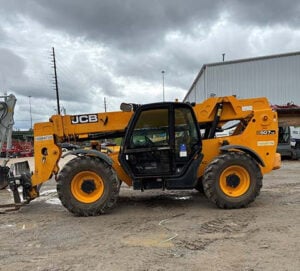 Factory Enclosed CAB w/ HEAT & AC, JCB Turbo Diesel Engine, Foam Filled Tires, 4WD, Crab-Steering, Fenders, Lift Hook, Work Lights, Frame Leveling, Auxiliary Hydraulics, Quick Tach, QC Carriage w/ Fork, Fleet Maintained