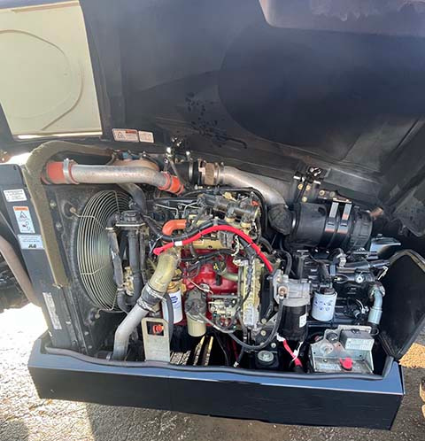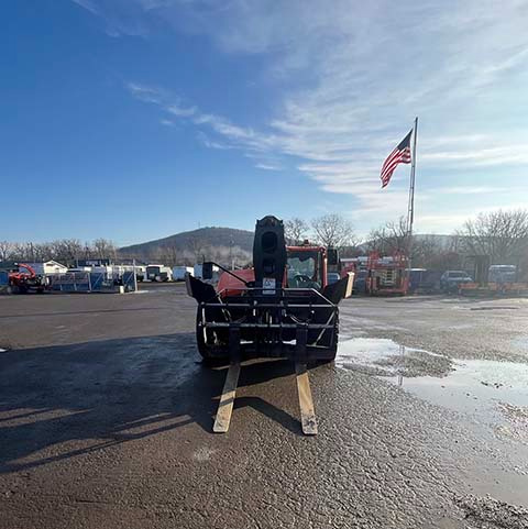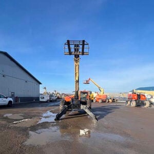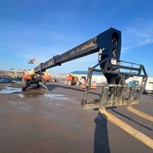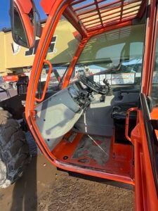 Factory Enclosed CAB w/ HEAT & AC, Outriggers/Stabilizers, Cummins Turbo Diesel Engine – 130HP, Solid BOSS Tires, 4WD, Crab-Steering, Work Lights, Frame Leveling, Auxiliary Hydraulics, Quick Tach, QC Carriage w/ Forks, FRESH Service (Filters & Fluids), Touch-Up Paint & Some NEW Decals, Fleet Maintained, Weighs 33580lbs