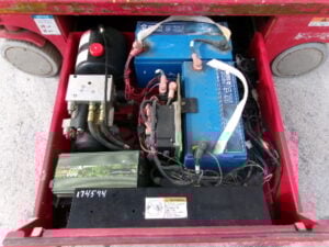 24V DC Electric Motor (Batteries), 2WD, Solid Non-Marking Tires, 25% Gradeability, 24” Roll-Out Deck-Extension, 2-Person Platform, Power to Platform, 500lbs Lift Capacity, Weighs 2690lbs