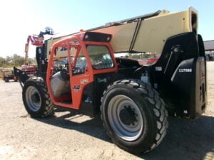 Outriggers/Stabilizers, Cummins Turbo Diesel Engine – 130HP, Foam Filled Tires @80%, 4WD, Crab-Steering, ClearSky Smart Fleet, Work Lights, Flashing Beacon, Lift Hook, Frame Leveling, Auxiliary Hydraulics, Quick Tach, QC Side-Tilting Carriage w/ Forks, CAT Fleet Maintained, Weighs 36536lbs