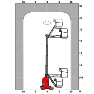 25’9″ Platform Height / 31’9″ Work Height / 10’4″ Horizontal Reach / 39″ Wide