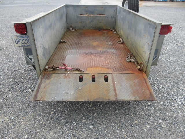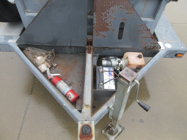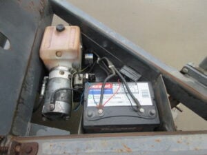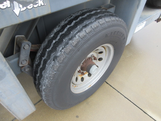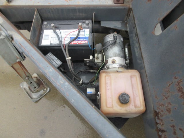 9ft Deck Trailer, Single Axle, Radial Tires, Power Deck System, Unhitched Holding, Automatic Deck Latch, Spring Suspension, 12V Self-Contained Hydraulic System, Surge Brakes, Spare Tire, Capacity 4500lbs, Weighs 1795lbs