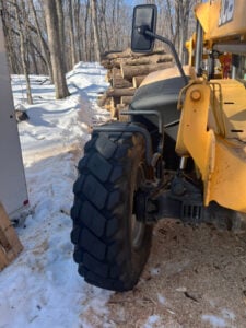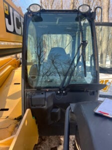 Factory Enclosed CAB w/ HEAT, JCB Turbo Diesel Engine, 4WD, Foam Filled Tires (Installing 2x Better Used on Rear), Crab-Steering, Fenders, Frame Leveling, Auxiliary Hydraulics, Quick Tach, Carriage w/ Forks, Fleet Maintained, Complete Service (Oil, Differential & Fluids)