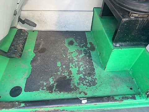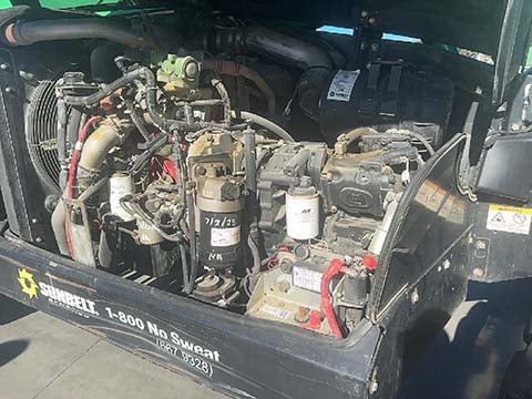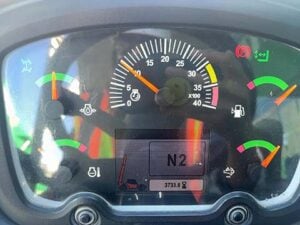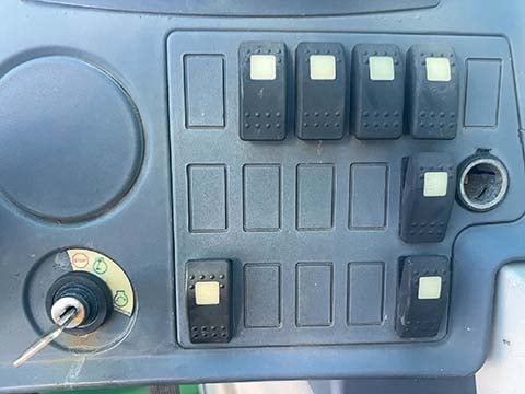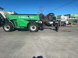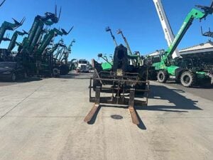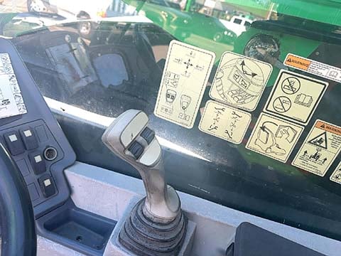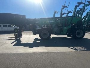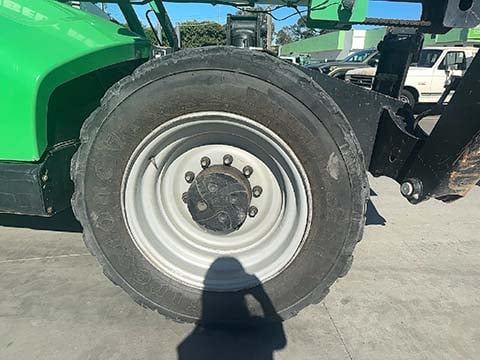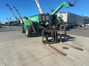 Outriggers/Stabilizers, Cummins Turbo Diesel Engine – 130HP, Foam Filled Tires, 4WD, Crab-Steering, Frame Leveling, Auxiliary Hydraulics, Quick Tach, QC Carriage w/ Forks, Fleet Maintained, Weighs 36536lbs