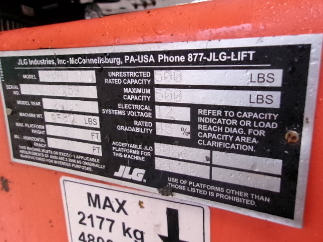 Kubota Diesel Engine, 4WD, Foam Filled Tires, 45% Gradeability, JIB, Welder Ready, 5’ Platform, 500lbs Unrestricted Max Platform Capacity, Fleet Maintained, Weighs 9580lbs
