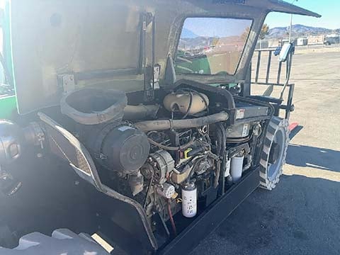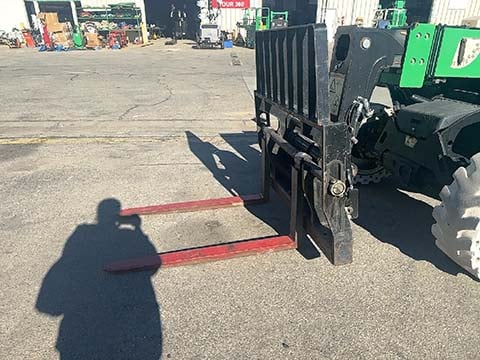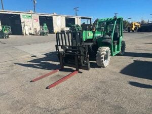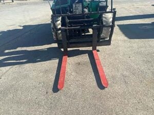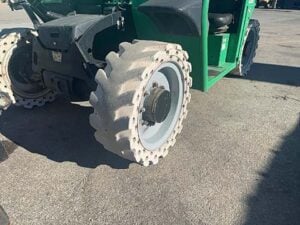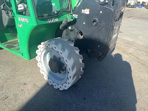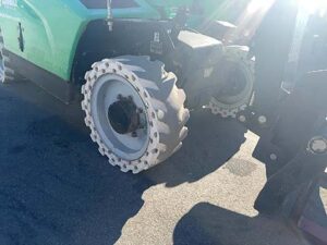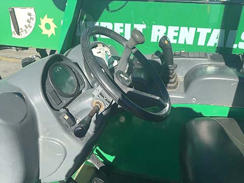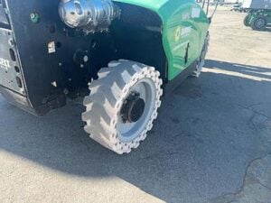 Deutz Turbo Diesel Engine – “No DEF” 74HP, Non-Marking Solid BOSS Tires, 4WD, Crab-Steering, Auxiliary Hydraulics, Quick Tach, QC Carriage w/ Forks, Fleet Maintained, Weighs 12500lbs