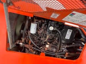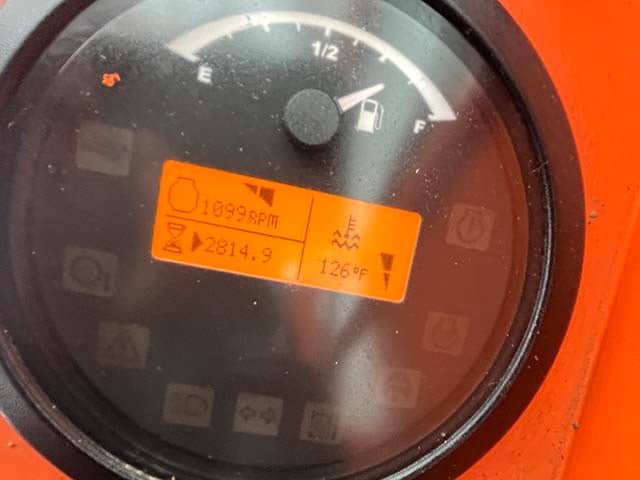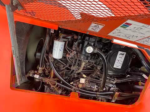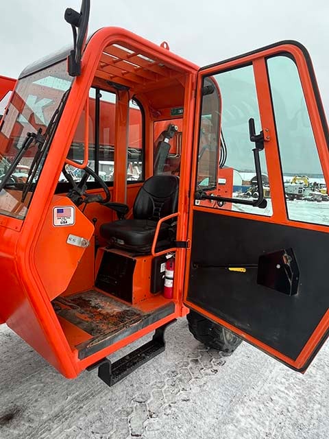 Factory Enclosed CAB w/ HEAT, Cummins Turbo Diesel Engine – 85HP, Pneumatic Tires, 4WD, Crab-Steering, Frame Leveling, Auxiliary Hydraulics, Quick Tach, QC Carriage w/ Forks, FRESH Service (Fluids & Filters), Touch-Up Paint w/ Some New Decals, Fleet Maintained, Weighs 23468lbs