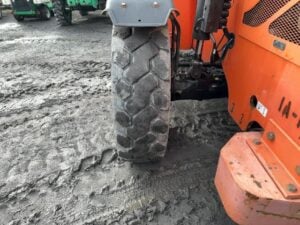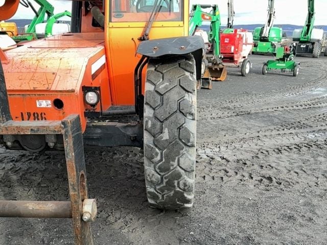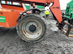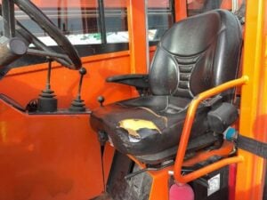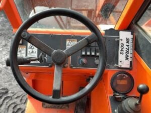 Factory Enclosed CAB w/ HEAT, Cummins Turbo Diesel Engine – 85HP, Solid BOSS Tires, 4WD, Crab-Steering, Frame Leveling, Auxiliary Hydraulics, Quick Tach, QC Carriage w/ Forks, Fleet Maintained