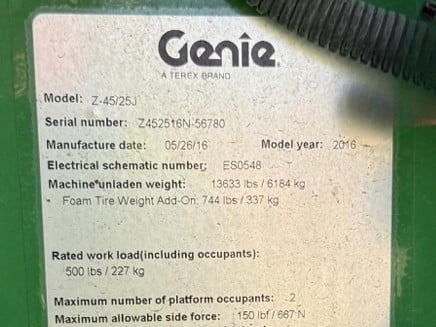 2016 GENIE Z-45/25J RT – Used Articulating Boom Lift