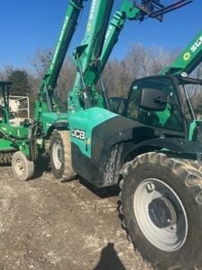 JCB Turbo Diesel Engine w/ Block Heater, Foam Filled Tires, 4WD, Crab-Steering, Fenders, Frame Leveling, Auxiliary Hydraulics, Quick Tach, QC Carriage w/ 48″ Forks, Fleet Maintained