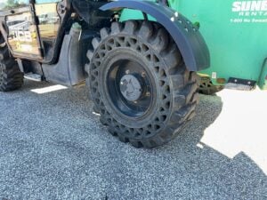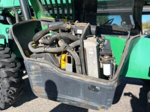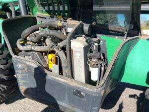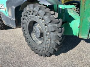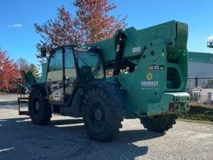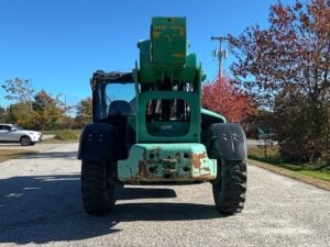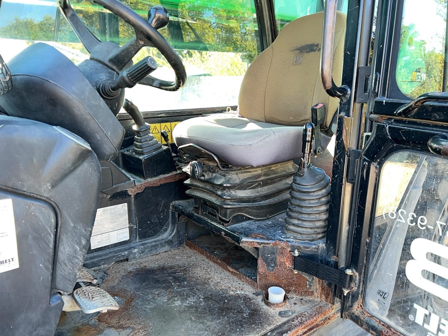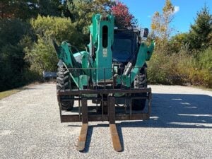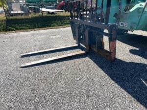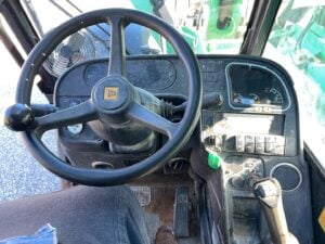 Factory Enclosed CAB w/ HEAT, Outriggers/Stabilizers, JCB Turbo Diesel Engine w/ Block Heater – “No DEF” 74HP, Solid BOSS Tires, 4WD, Crab-Steering, Fenders, Work Lights, Frame Leveling, Auxiliary Hydraulics, Quick Tach, QC Side-Tilting Carriage w/ Forks, Fleet Maintained, Weighs 31145lbs