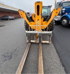 Factory Enclosed CAB w/ HEAT & AC, Outriggers/Stabilizers, JCB Turbo Diesel Engine w/ Block Heater – 109HP, Foam Filled Tires, 4WD, Crab-Steering, Fenders, Work Lights, Lift Hook, Frame Leveling, Auxiliary Hydraulics, Quick Tach, QC Carriage w/ Forks, FRESH Service (Filters & Fluids), Touch-Up Paint & Some New Decals (To Be Completed Next Week), Fleet Maintained, Weighs 29430lbs