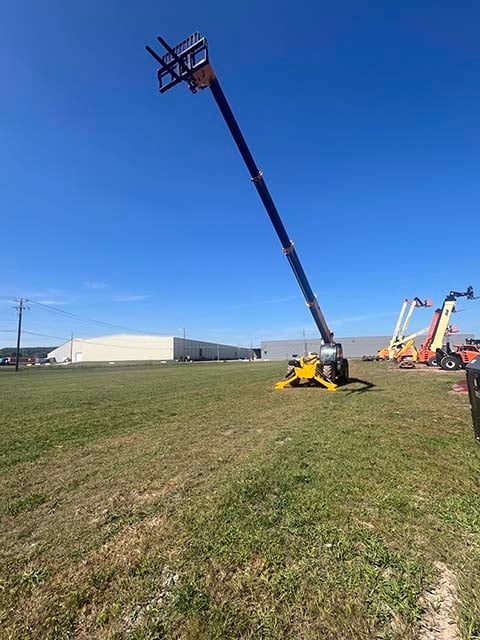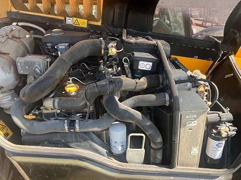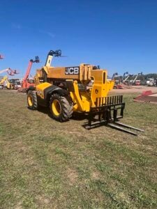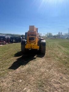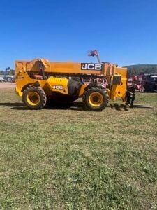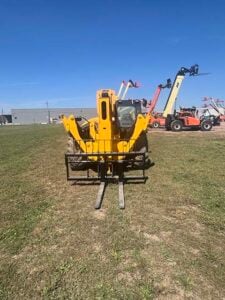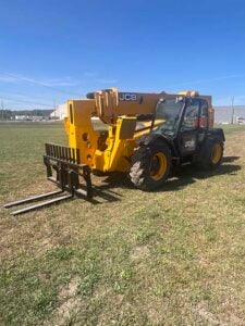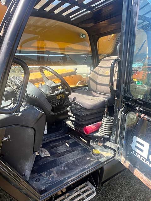 Factory Enclosed CAB w/ HEAT & AC, Outriggers/Stabilizers, JCB Turbo Diesel Engine w/ Block Heater – 109HP, Foam Filled Tires, 4WD, Crab-Steering, Fenders, Work Lights, Lift Hook, Frame Leveling, Auxiliary Hydraulics, Quick Tach, QC Carriage w/ Forks, FRESH Service (Filters & Fluids), Touch-Up Paint & Decals (To Be Completed), Fleet Maintained, Weighs 29430lbs