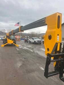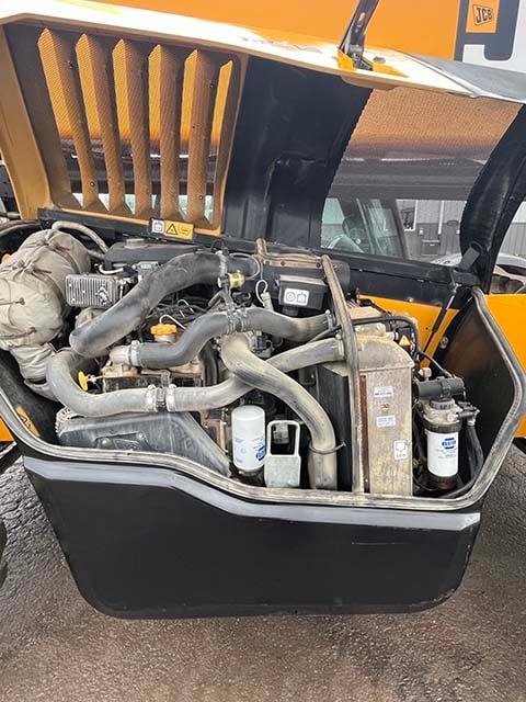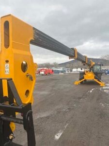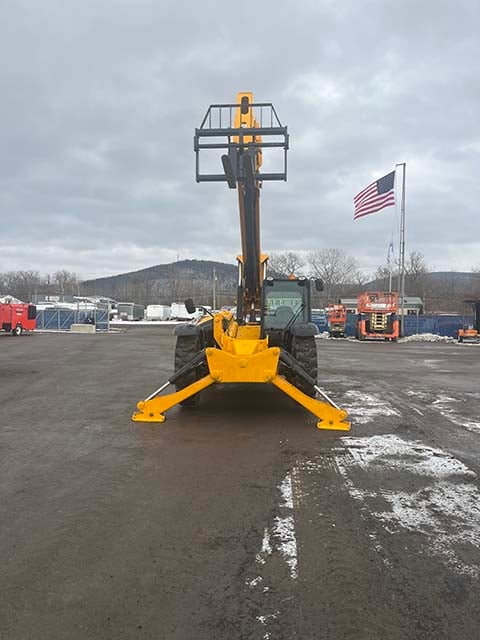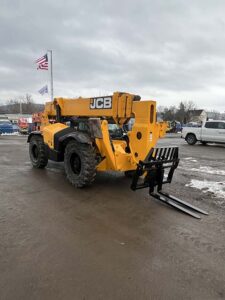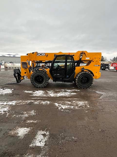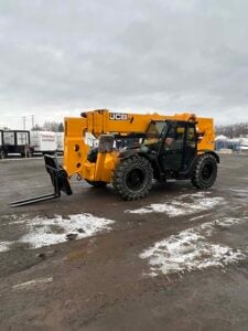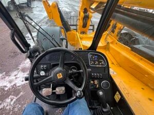 Factory Enclosed CAB w/ HEAT & AC, Outriggers/Stabilizers, JCB Turbo Diesel Engine w/ Block Heater – 109HP, Solid BOSS Tires, 4WD, Crab-Steering, Fenders, Work Lights, Lift Hook, Frame Leveling, Auxiliary Hydraulics, Quick Tach, QC Carriage w/ Forks, FRESH Service (Filters & Fluids), Touch-Up Paint & Decals, Fleet Maintained, Weighs 29430lbs