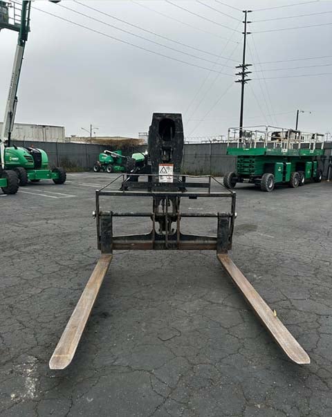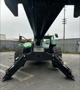 Outriggers/Stabilizers, Cummins Turbo Diesel Engine – 130HP, Foam Filled Tires, 4WD, Crab-Steering, Frame Leveling, Auxiliary Hydraulics, Quick Tach, QC Carriage w/ Forks, Fleet Maintained