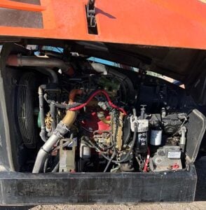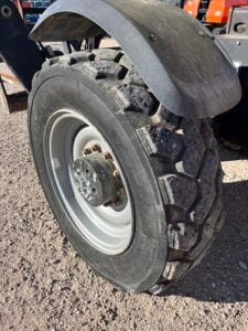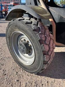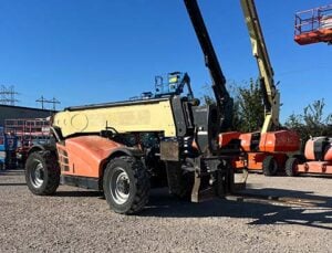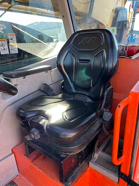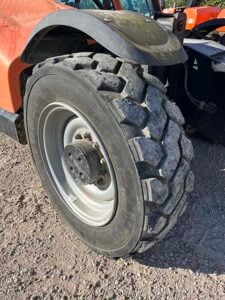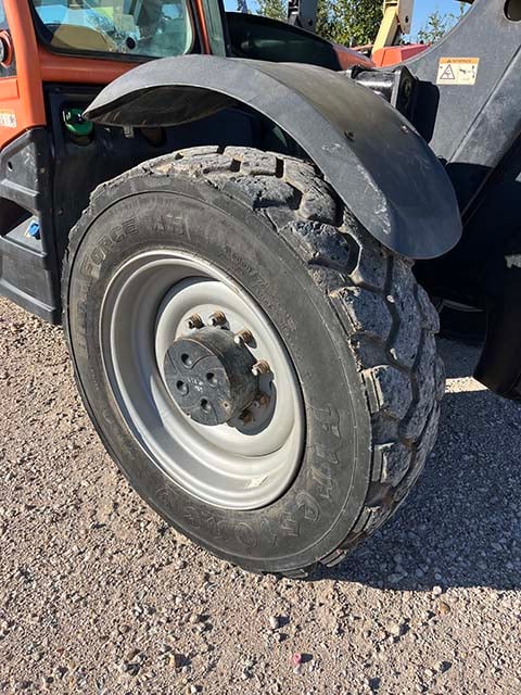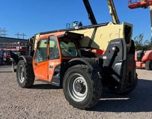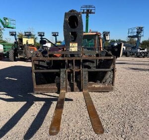 Factory Enclosed CAB w/ HEAT & AC, Outriggers/Stabilizers, Cummins Turbo Diesel Engine w/ Block Heater – 130HP, Foam Filled Tires, 4WD, Crab-Steering, Fenders, Work Lights, Flashing Beacon, Frame Leveling, Auxiliary Hydraulics, Quick Tach, 72″ QC Carriage w/ Forks, FRESH Service (Filters & Fluids), Fleet Maintained