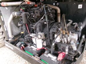 Cummins Turbo Diesel Engine, Foam Filled Tires, 4WD, Crab-Steering, Work Lights, Frame Leveling, Auxiliary Hydraulics, Quick Tach, QC Carriage w/ Forks, FRESH Paint & Decals, Serviced 1/25 @1987 Hours, Fleet Maintained, Weighs 32200lbs