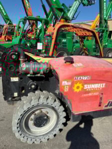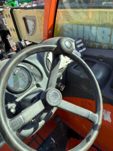 Deutz Turbo Diesel Engine – “No DEF” 74HP, Non-Marking Solid BOSS Tires, 4WD, Crab-Steering, Auxiliary Hydraulics, Quick Tach, QC Carriage w/ Forks, Fleet Maintained