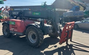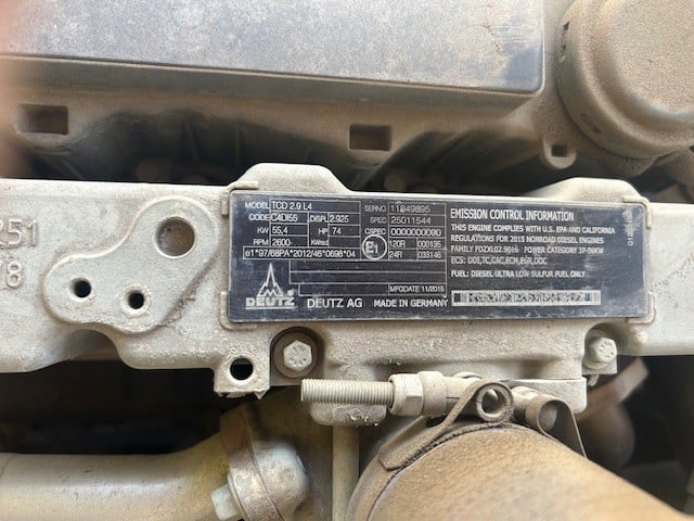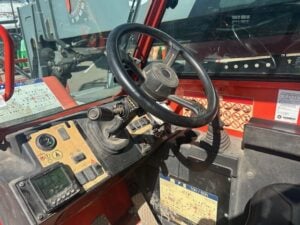 Factory Enclosed CAB w/ HEAT, Deutz Turbo Diesel Engine – “No DEF” 74HP, Foam Filled Tires, 4WD, Crab-Steering, Frame Leveling, Auxiliary Hydraulics, Quick Attach, QT Carriage w/ Forks, Fleet Maintained